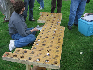 How many items can you find in this picture? I keep finding more! The pancakes in the page captain's hand are item 59 - "Pat Robertson's Age Defying Protein Pancakes," (another page captain actually took a bite of said pancakes and I wish I had taken a picture of his face), the bicycle in the background is item 38, the "triple-high" bicycle, you will also recognize item 3, the "dixie cup icosahedron," and on the ground in front of the trunk is item 214 "a chainsaw carving of a chainsaw" (ok, kind of... but it counted!). The trunk itself is an item I'm not finding on the list right now. You had to have as many of your team members as possible stand on a 'dead man's chest', and had to prove that it belonged to someone who was actually dead. Oh there's another one too: right next to the chainsaw carving of a chainsaw is the homemade theremin.
